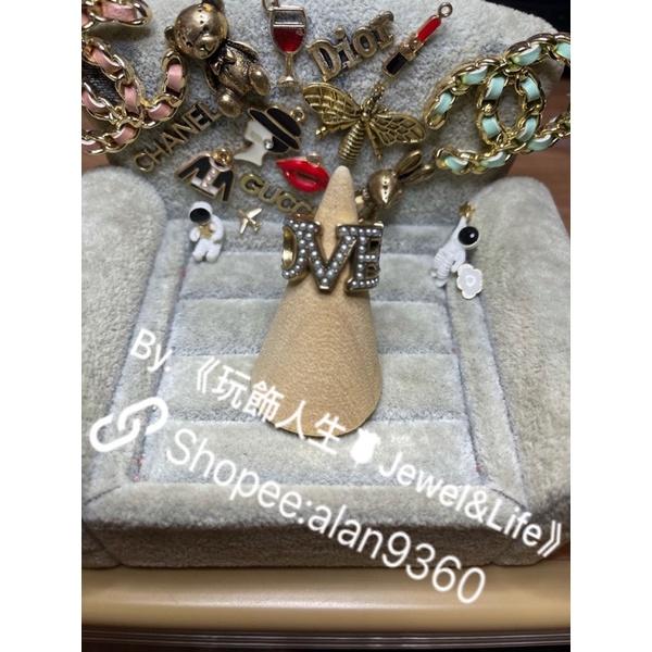 GUCCI LOVE 超美 復古金 珍珠 開口 二手 寬版 造型 戒指