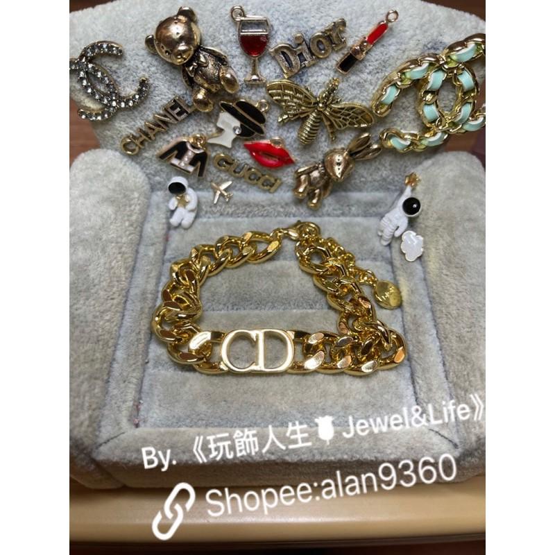 DIOR 超美 素面 亮金色 粗圈 CD 二手 造型 手鍊