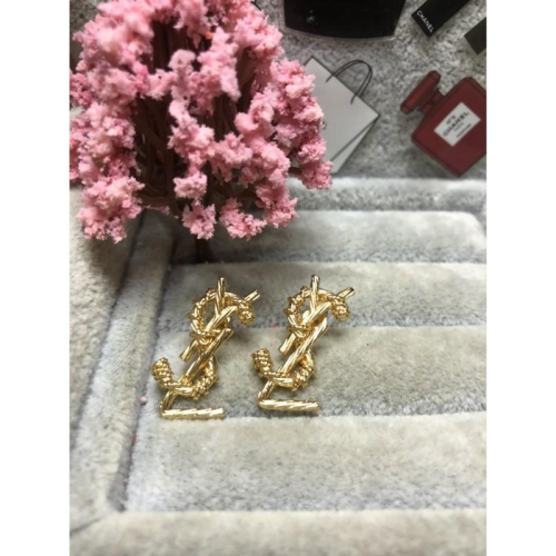 Yves Saint Laurent YSL 金色 麻花 二手 字母 logo 耳環