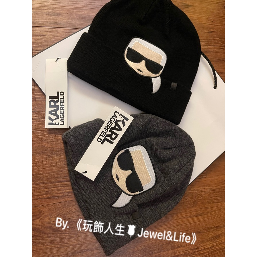 經典老佛爺 立體刺繡LOGO 黑 灰 毛帽 毛線帽