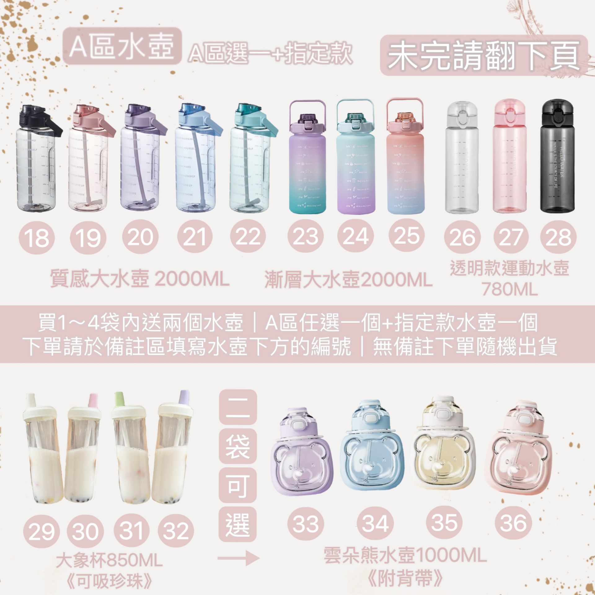🎗️買一袋送兩個水壺 |A區1~32號選一+指定款簡約隨行杯800ML