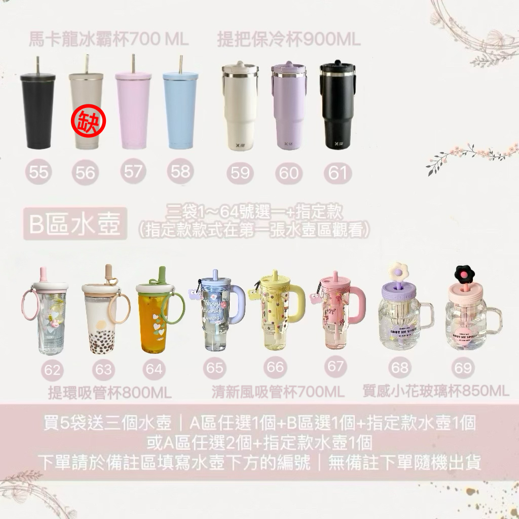 🎗️買2袋送兩個水壺 |A區1~54號選一+指定款簡約隨行杯800ML