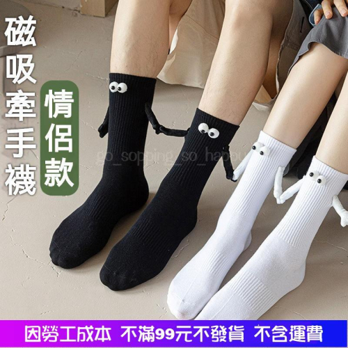 全館免運 牽手襪子磁吸款 閨蜜情侶 磁吸情侶會牽手襪子 情侶襪 磁吸襪 牽腳襪 可以牽手的襪子 中筒襪 長襪