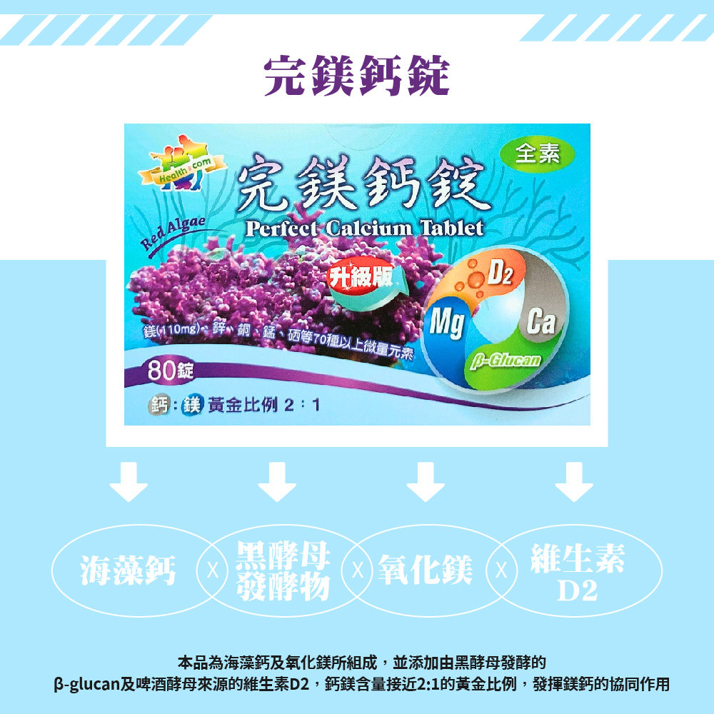🔥內容物:海藻鈣、海洋鎂、微結晶纖維素、硬脂酸鎂、 專利 3 - 聚葡萄糖(G-glucan)、維生素D3