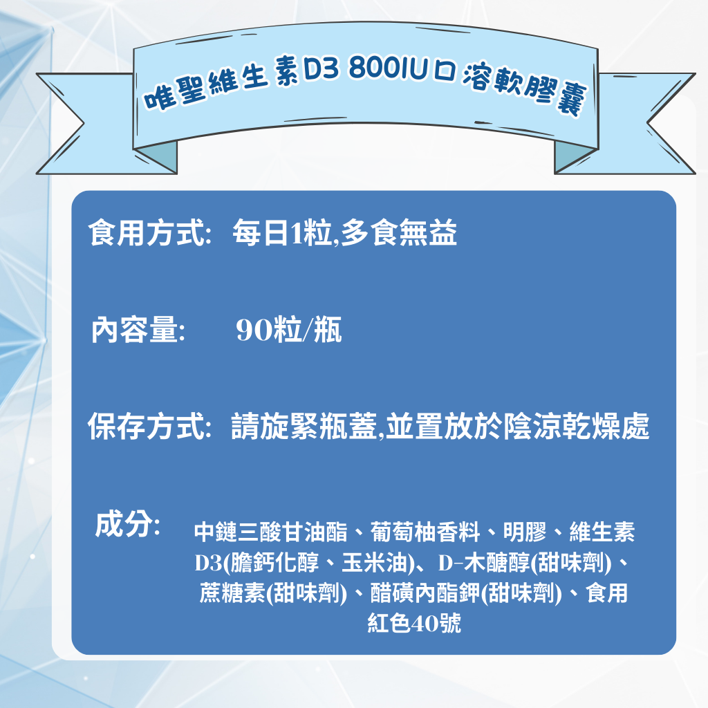 🔥品名:唯聖維生素D3 800IU口溶軟膠囊