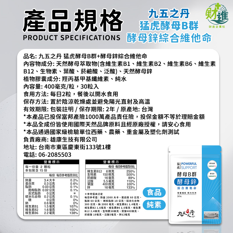 🔥品名:九五之丹 猛虎酵母B群+酵母鋅綜合維他命