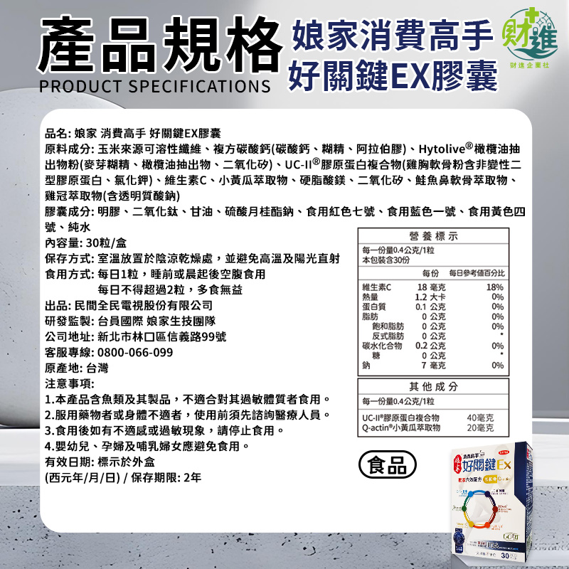 消費高手好關鍵EX膠囊 膠原蛋白 娘家好關鍵EX 30粒 uc2 軟骨素 MSM 娘家 ucii