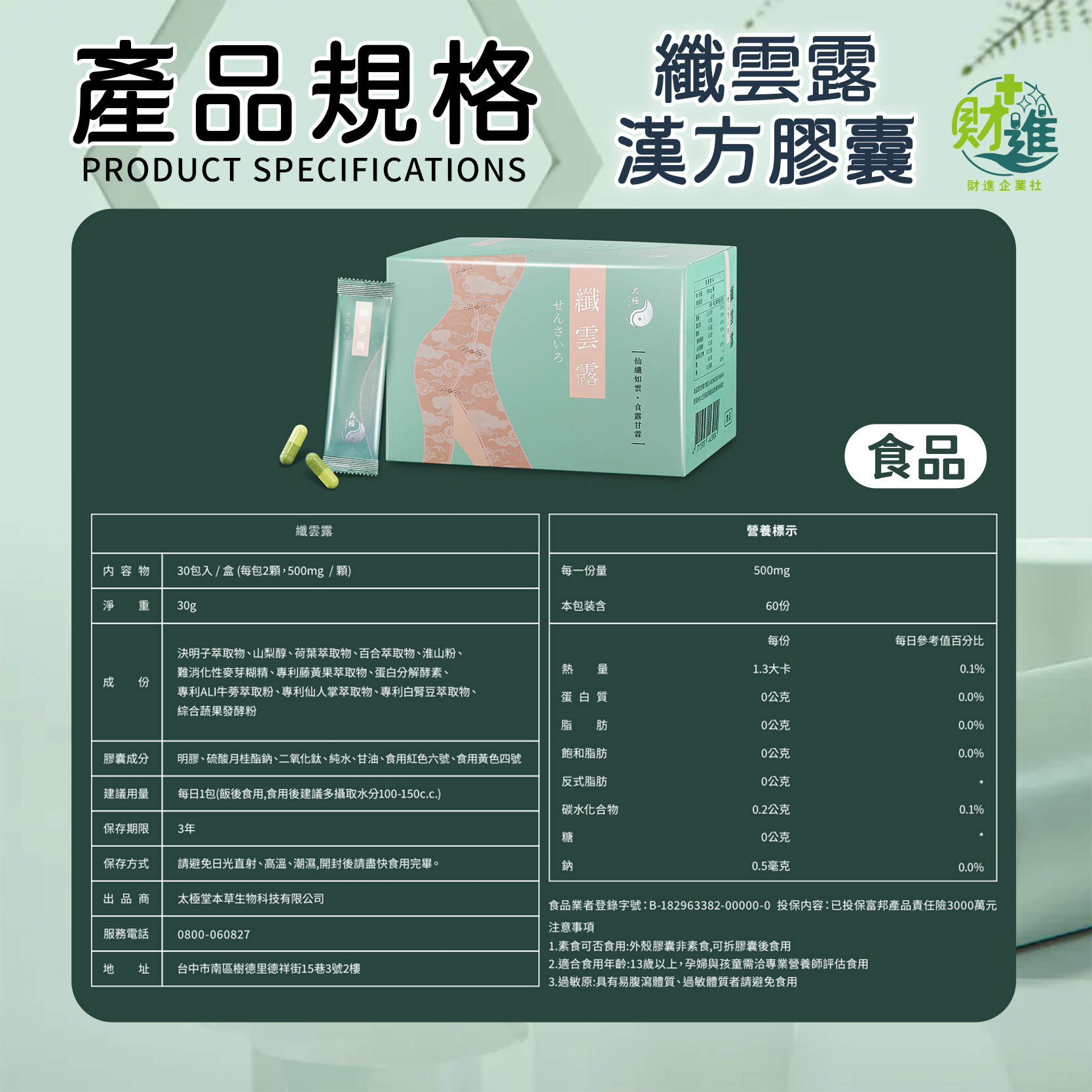 💚纖雲露 漢方膠囊,每日一包,簡單方便,為您的健康生活提供全方位的支持。