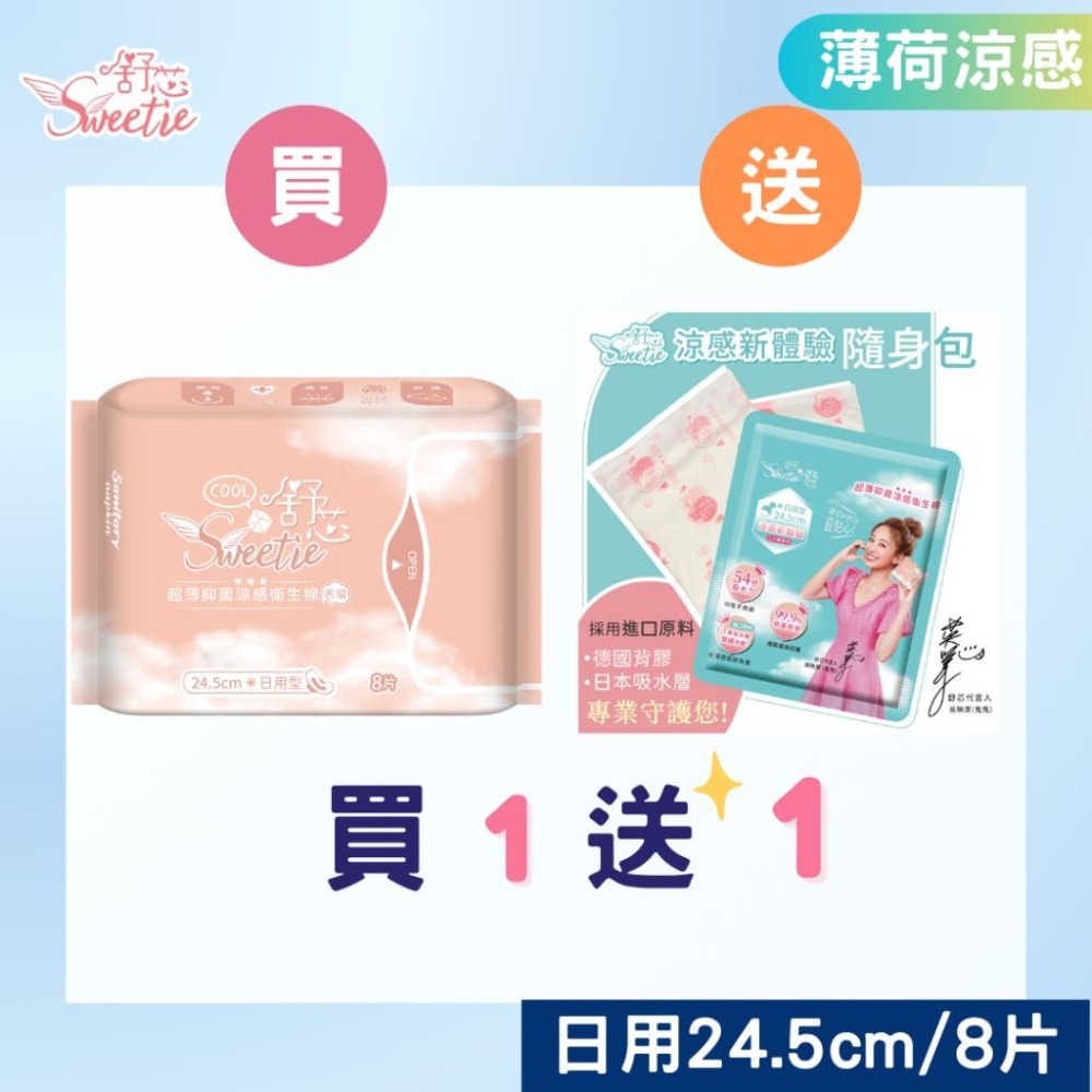 ▶ Sweetie舒芯COOL ꒰涼感꒱ 抑菌衛生棉 日用型24.5cm(8片/包)◀ 𝙣𝙚𝙬 .ᐟ