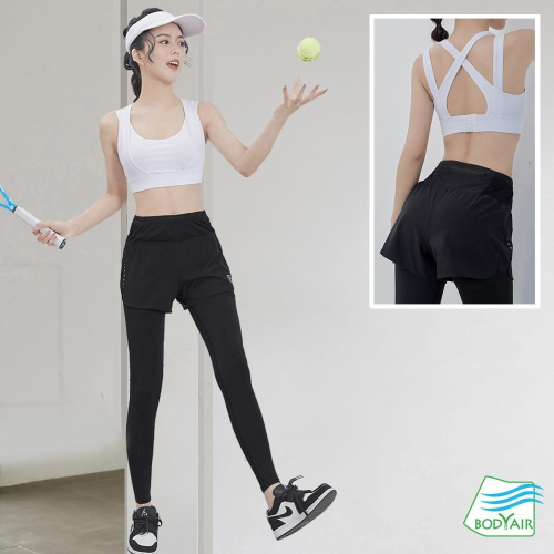 【BODYAIR】假兩件高腰修身版九分褲(運動.健身.慢跑)