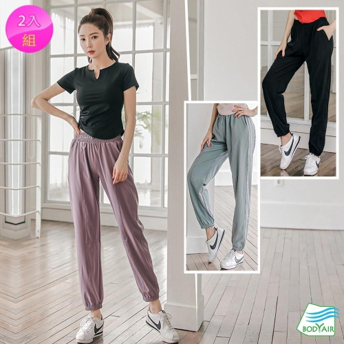 【BODYAIR】輕薄順滑純色哈倫褲 任2入(運動.健身.慢跑)