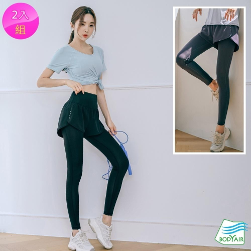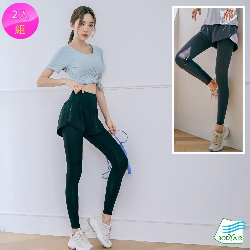 【BODYAIR】假兩件包腹柔韌九分褲 任2入(運動.健身.慢跑)