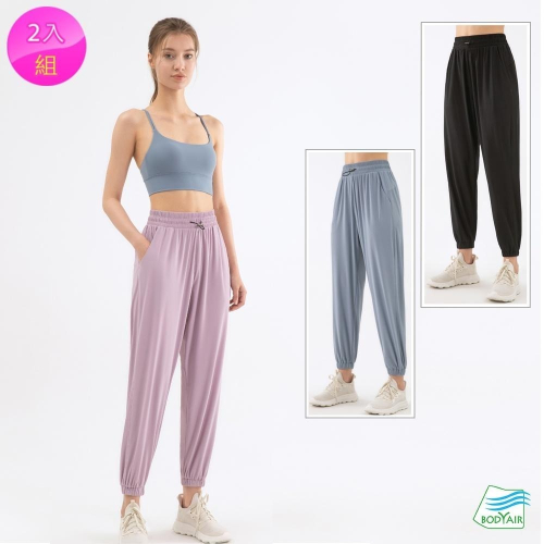【BODYAIR】冰涼垂墜感哈倫褲 任2入(運動.健身.慢跑)