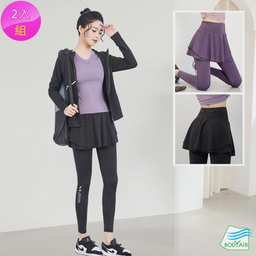 【BODYAIR】假兩件雙層球裙舞感九分褲 任2入(運動.健身.慢跑)