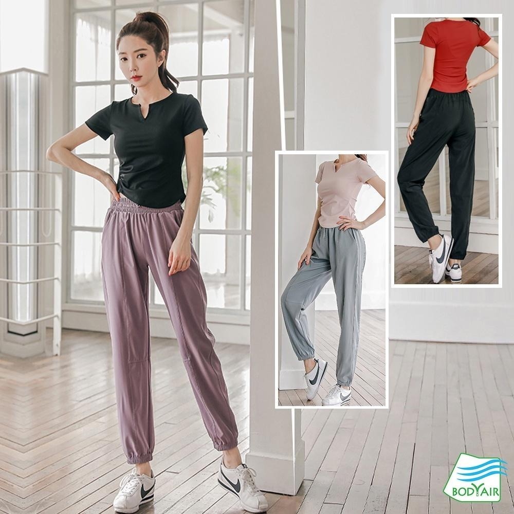 【BODYAIR】小V領Q彈上衣+輕薄順滑哈倫褲套組(運動.慢跑.健身)
