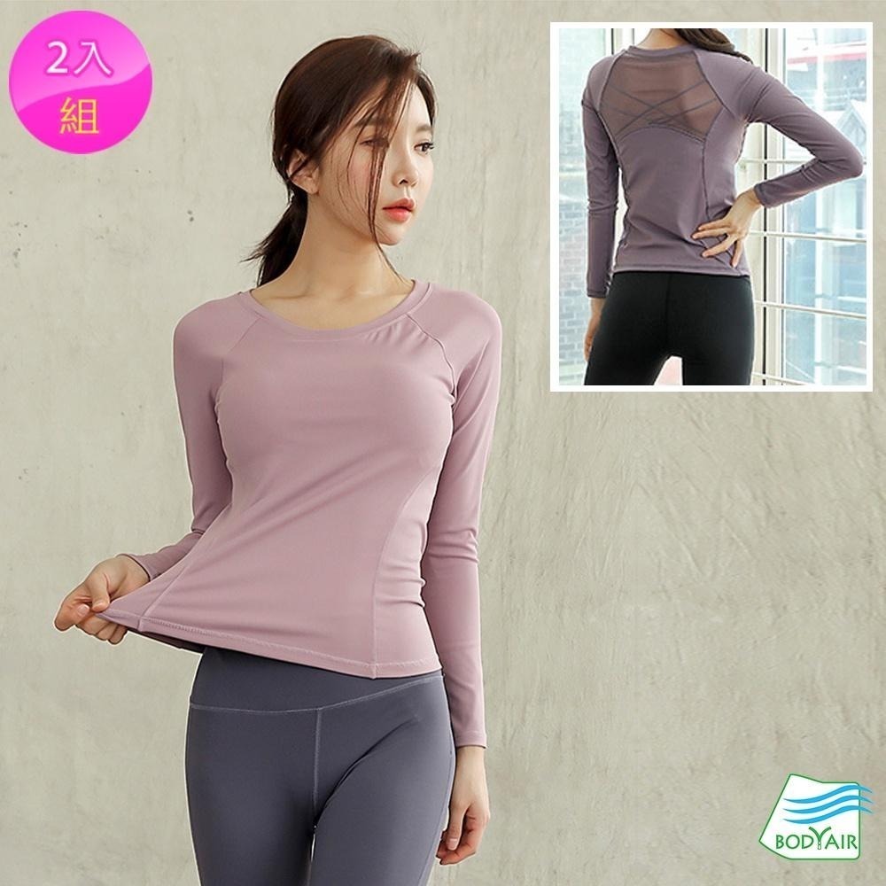【BODYAIR】編織線美背紗BRA長袖上衣 任2入(瑜珈.慢跑.健身)