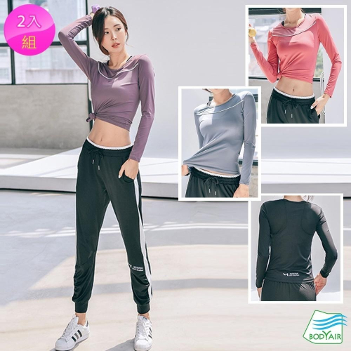 【BODYAIR】滾邊拼細網修身長袖上衣 任2入(瑜珈.慢跑.健身)