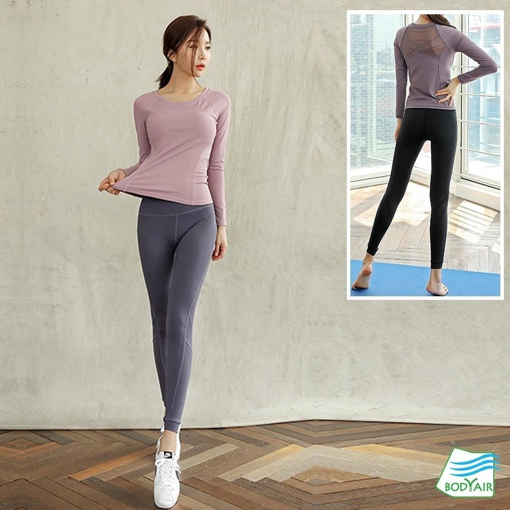 【BODYAIR】編織線背紗BRA長袖上衣.S斜線蜜桃褲套組(運動.健身.慢跑)