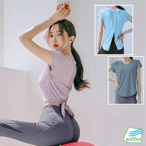【BODYAIR】 冰感輕盈點布綁腰罩衫上衣(瑜珈.運動.慢跑)
