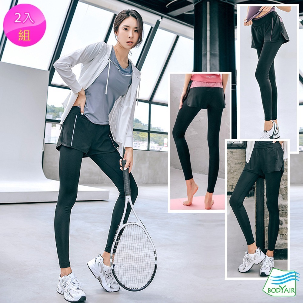 【BODYAIR】 假兩件滾色邊顯瘦九分褲 任2入(運動.健身.慢跑)