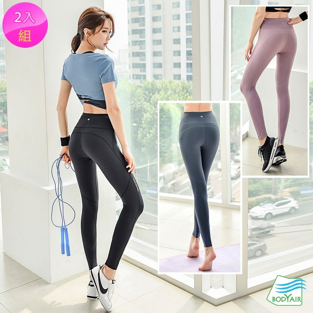 【BODYAIR】 親膚拼接翹臀蜜桃褲 任2入(運動.健身.慢跑)