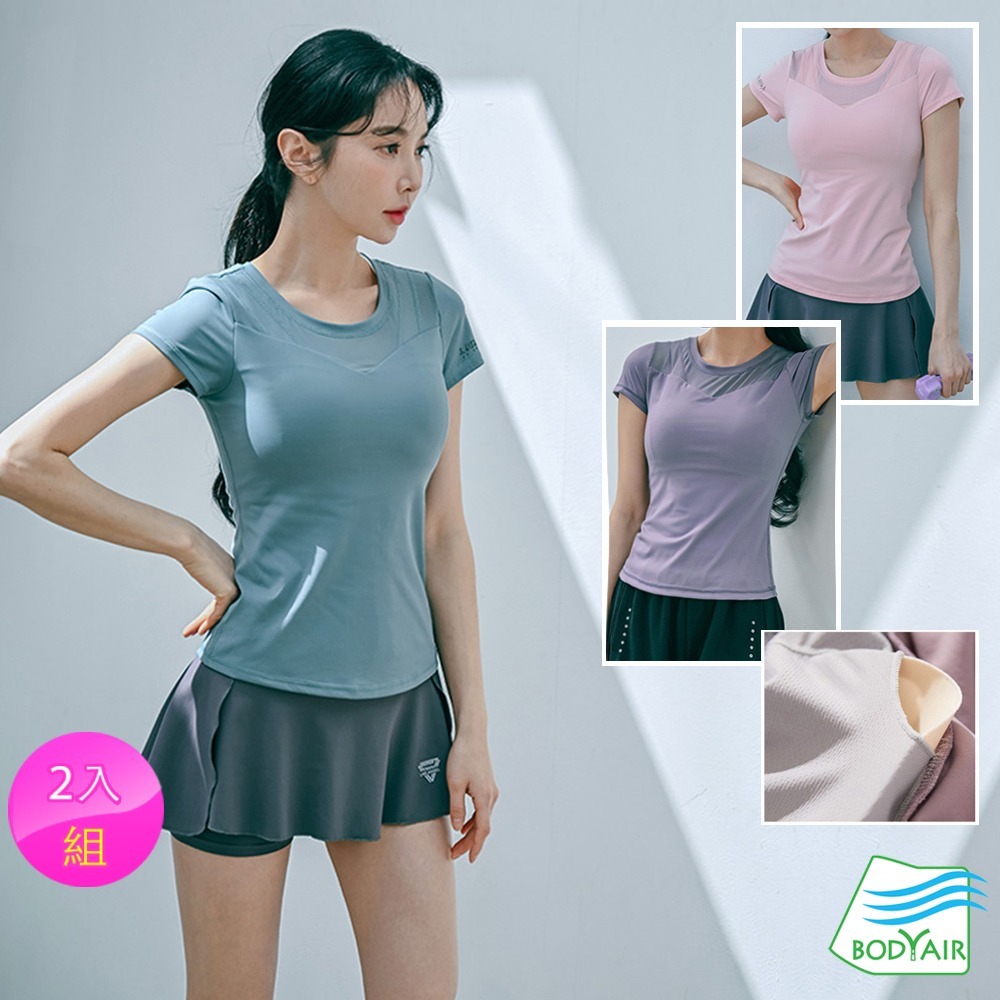 【BODYAIR】任2入 小肩透紗收腰BRA上衣(瑜珈.慢跑.健身)