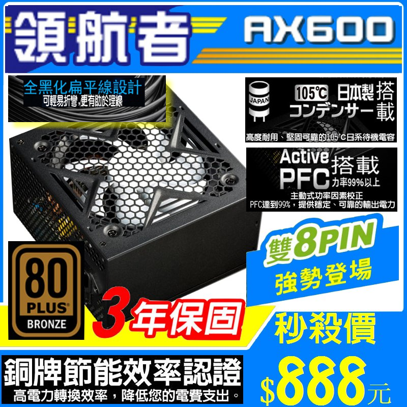 銅牌80+ 3年保固 領航者 600 銅牌 電源供應器 雙8pin 日系電容 POWER