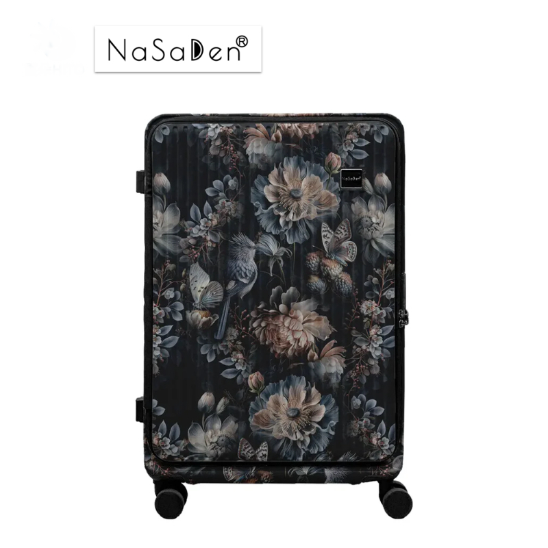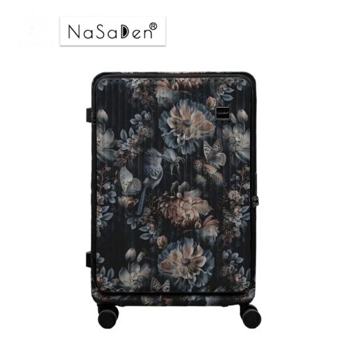 NaSaDen納莎登萊茵系列前開行李箱 花鳥-藍 拉鍊行李箱 25吋/29吋