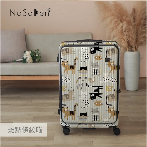 NaSaDen納莎登萊茵系列前開行李箱 斑點條紋喵 拉鍊行李箱 25吋/29吋