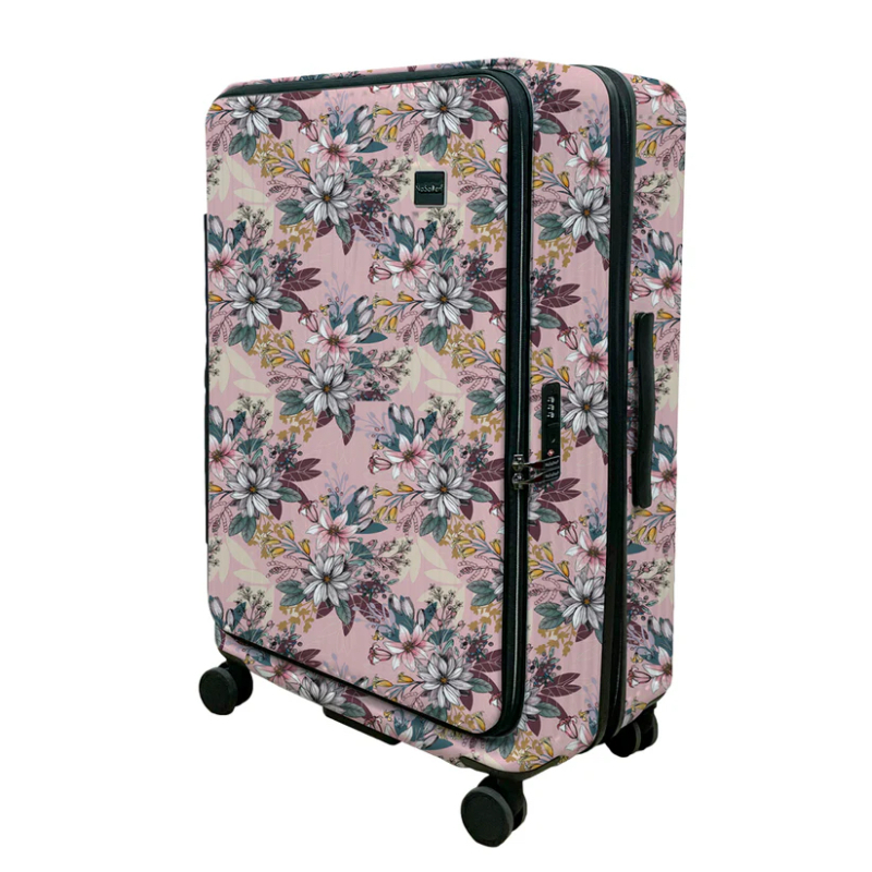 NaSaDen納莎登萊茵系列前開行李箱 粉小花 拉鍊行李箱 25吋/29吋