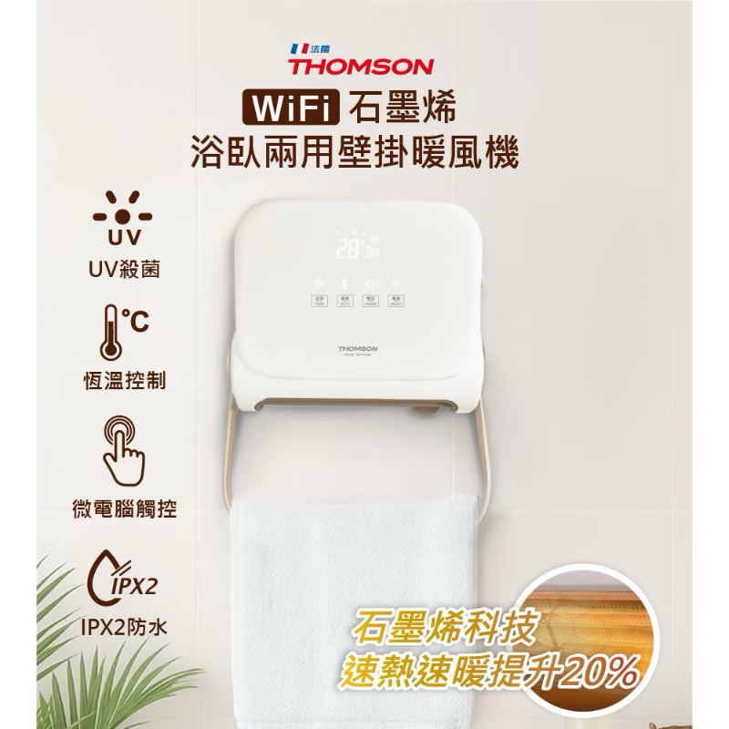 法國THOMSON WIFI石墨烯壁掛暖風機 奶茶白 TM-SAW35FW