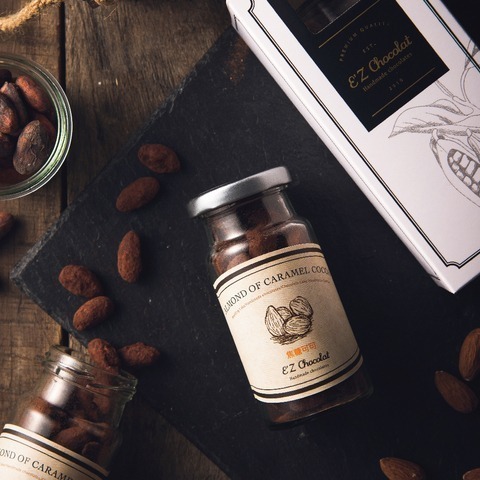 特選有機杏仁果炒香後裹上自家熬煮的焦糖,再撒上微苦甜的可可粉,外層香脆涮嘴的口感,是店內受歡迎的人氣單品。