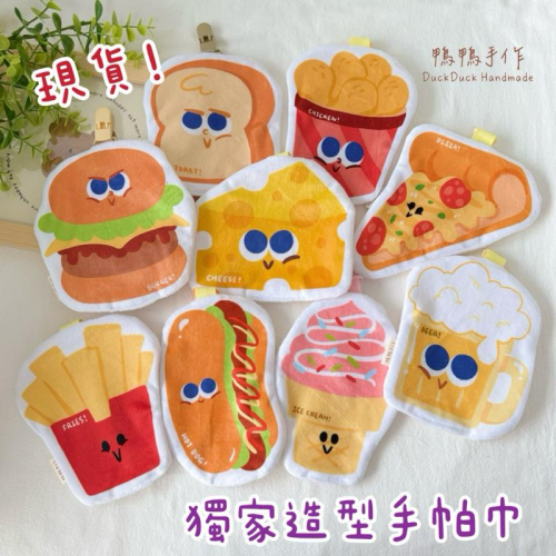 全館現貨!🈴商檢合格 🔥鴨鴨手作|漢堡/薯條/披薩/冰淇淋/起司/炸雞桶/熱狗 幼兒園手帕 造型手帕巾 手帕 手帕巾