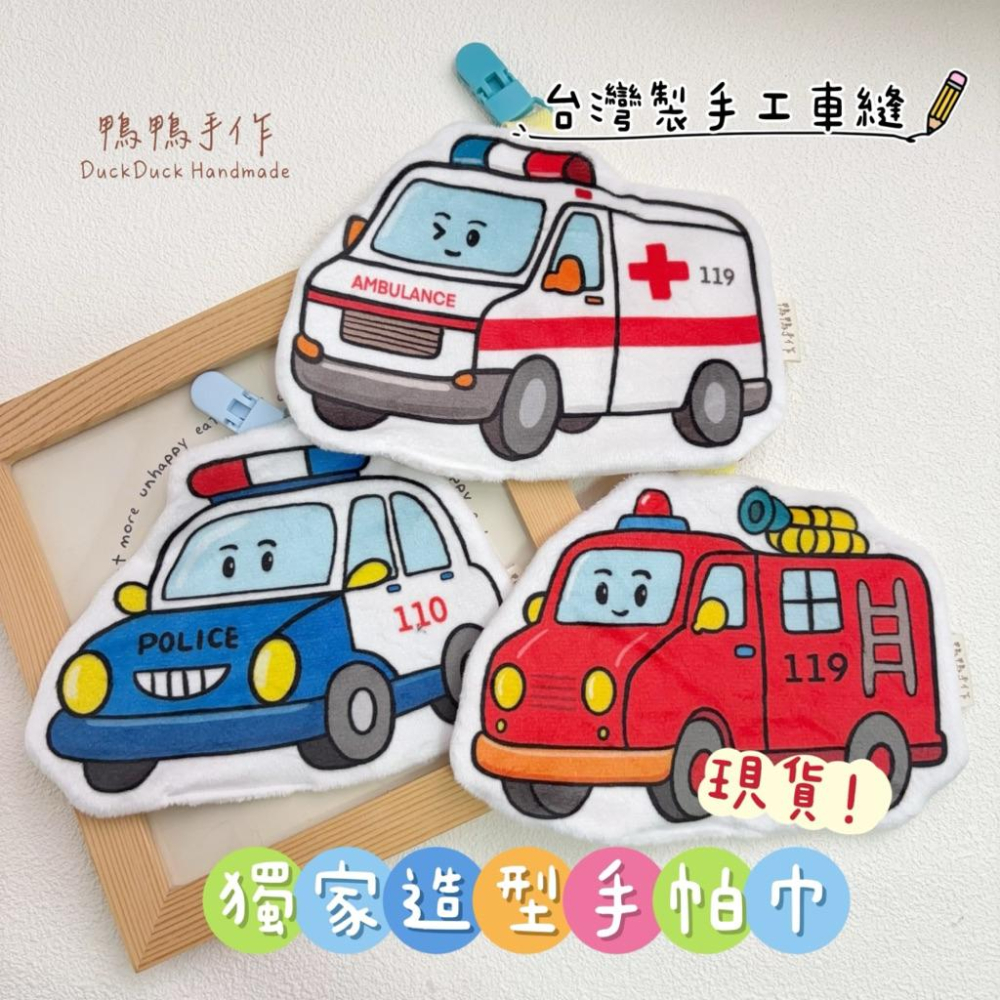 全館現貨!🈴商檢合格 🔥鴨鴨手作|警車/消防車/救護車/車車 幼兒園手帕 造型手帕巾 手帕97-99
