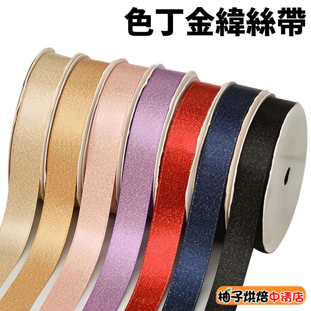 【柚子烘焙食品】色丁金緯絲帶(顏色尺寸內詳_100碼/卷)織帶 手作材料 緞帶 絲帶 彩帶 禮物DIY包裝彩帶蝴蝶結緞帶