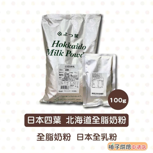 【柚子烘焙食品】日本 四葉 北海道全脂奶粉 100g 分裝 全脂奶粉 四葉乳品 全乳粉 日本北海道四葉全脂奶粉 烘焙材料