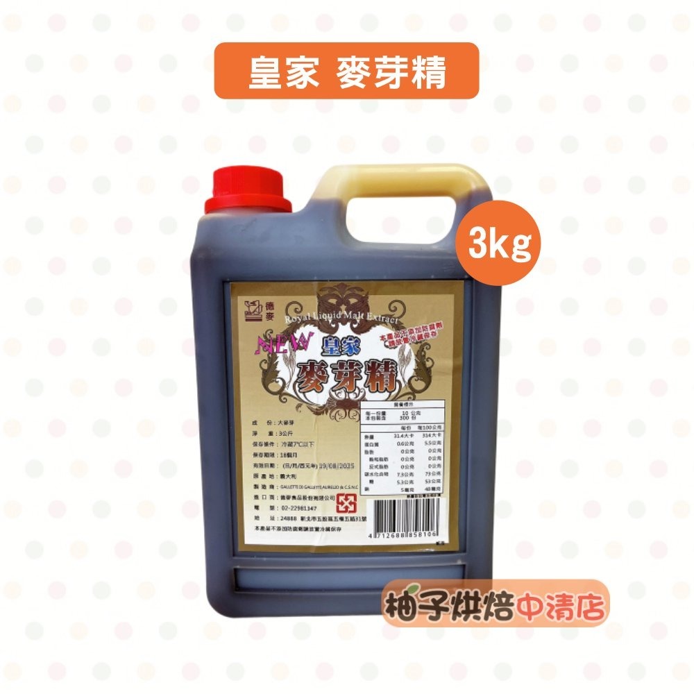 品名:皇家麥芽精 成分:大麥芽 淨重:3公斤 保存條件:冷藏7°C以下 保存期限:18個月 原產地:義大利 進口商:德麥食品股份有限公司 *****下單請注意***** 📦 包裹規格限制: ◆超商取貨及蝦皮店到店限重五公斤以內(含包材)。 提醒您若購買1公斤的商品,超取蝦取最多只能購買四包喔! ◆下單後若商品無缺貨1~3天內會出貨。(特殊情況除外) ◆黑貓宅急便 重量限制20公斤以內~ ◆花東,外島及偏遠地區 運費另計, 下單需另外下標「運費補差額」 ◆開箱貨品時請錄影,有任何問題可以確保雙方權益!!!! 🔔 任何問題歡迎 "聊聊" ◆實體店面:柚子烘焙食品 中清店 地址:台中市北區中清路一段292號 永春店 地址:台中市南屯區永春東路800號 中壢店 地址:桃園市中壢區延平路448號1樓