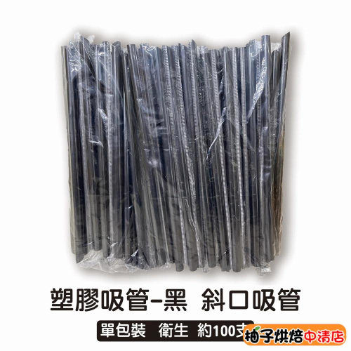 【柚子烘焙食品】黑色斜口吸管 獨立包裝 塑膠吸管 黑色吸管 22cm(約100支)冰沙吸管 珍珠吸管 粉圓吸管 飲料吸管