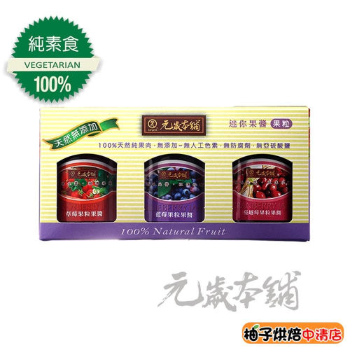 【柚子烘焙食品】元歲本舖 迷你果醬 3入/組(純素) 100g 迷你果醬 3入 果粒 果香 香味濃郁 小果醬 果醬禮盒