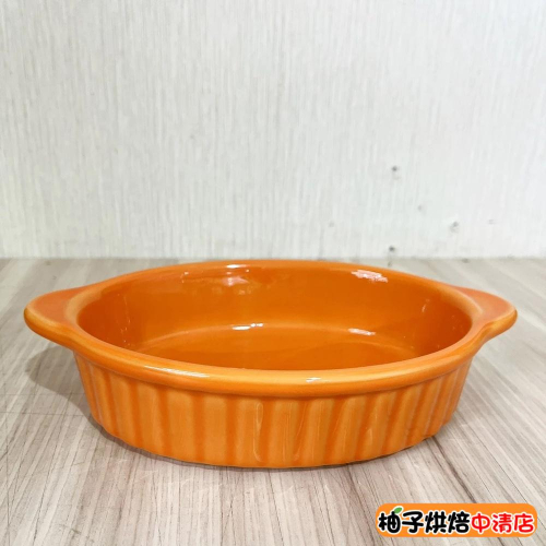 【柚子烘焙食品】Y-03E橢圓烤盤-橘 20.5*12.5 雙耳橢圓烤盤 焗烤麵 焗烤飯 焗烤盅 焗烤盤 烤皿