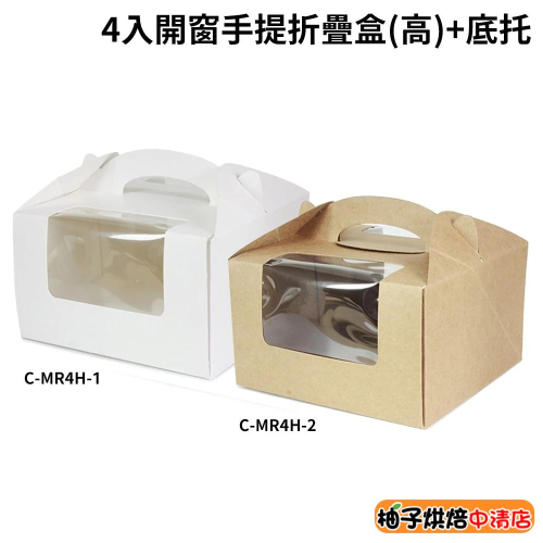 【柚子烘焙食品】4格 高款 折疊開窗盒 正方盒 外帶包裝盒 點心盒 蛋糕盒 外送餐盒 慕斯杯 紙杯 甜點盒 手提紙盒