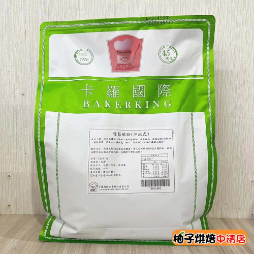 產品特色: 卡羅 雪莓娘粉(沖泡式) 免蒸煮可熱沖 成品雪白耐凍 Q中帶有彈性 可變化多種造型 做法簡單 用機器或手皆易做成薄片 依個人喜好調配口味 作出不同雪莓娘外皮 規格:2kg 儲存:置於陰涼,乾燥處一年。 產品資訊:本產品含有牛奶及其製品。 成品保存:室溫1~2天、冷藏7天(有包餡 2~3天)、冷凍1個月。 產地:台灣 製作方法: 1. 先將水80±2 克煮至沸騰後,沖至雪苺娘粉100 克中拌至濃稠狀。 2. 拌好之麵糊倒入蒸籠中,大火蒸15 分鐘。 3. 取出後用攪拌缸快速攪拌。 4. 冷卻至約50℃後,用桿麵棍壓成皮即可包餡。 免蒸雪莓娘製作方法: 先將水80±2克煮至沸騰後,沖入雪苺娘粉100克至攪拌缸,以快速攪打至表面光滑無顆粒、成糰即可整形使用。 *****下單請注意***** 📦 包裹規格限制: ◆超商取貨及蝦皮店到店限重五公斤以內(含包材)。 提醒您若購買1公斤的商品,超取蝦取最多只能購買四包喔! ◆下單後若商品無缺貨1~3天內會出貨。(特殊情況除外) ◆黑貓宅急便 重量限制20公斤以內~ ◆花東,外島及偏遠地區 運費另計, 下單需另外下標「運費補差額」 ◆開箱貨品時請錄影,有任何問題可以確保雙方權益!!!! 🔔 任何問題歡迎 "聊聊" ◆實體店面:柚子烘焙食品 ◆營業時間:10:00~21:00 ◆周一至周日皆有營業唷~ ◆中清店 地址:台中市北區中清路一段292號 電話:04-22061810 ◆永春店 地址:台中市南屯區永春東路800號 電話:04-23825489 ◆中壢店 地址:桃園市中壢區延平路448號1樓 電話:03-42550300