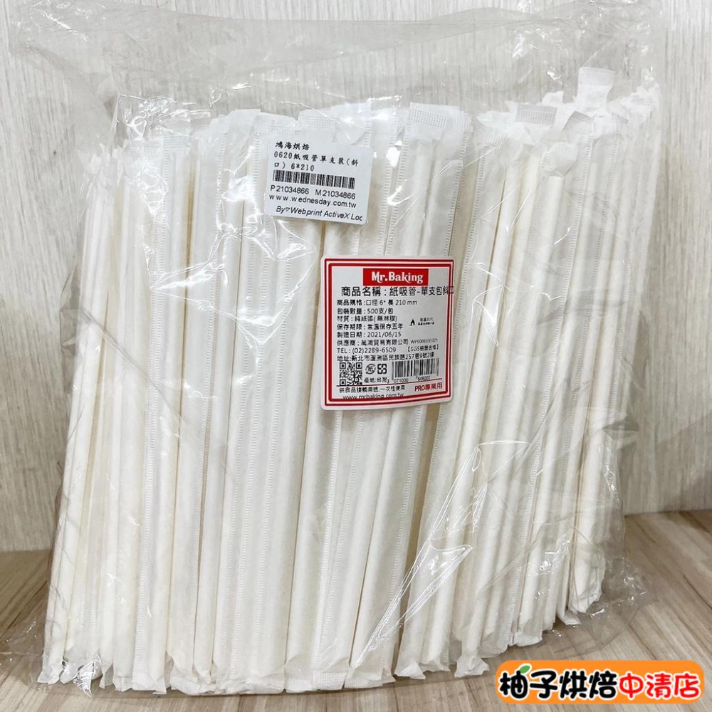 【柚子烘焙食品】白色 紙吸管單支裝 500入 斜口紙吸管 環保餐具 環保吸管 紙包吸管 吸管 無淋膜 一次性白色紙吸管