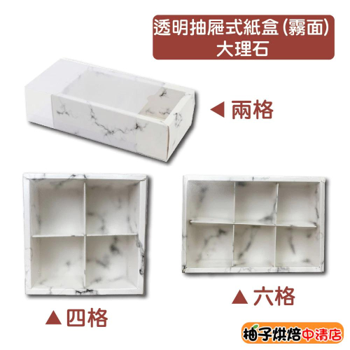 透明抽屜盒烘培紙盒 蛋黃酥 中秋月餅 小月餅 餅乾 甜點 月餅盒 雪媚娘 蛋黄酥 各式烘焙包裝盒 烘焙包裝材料 (本商品與門市同步販售,可先聊聊確定存貨,也可以預訂哦) 品名:透明抽屜式紙盒2粒裝(霧面)-大理石 尺寸:15.7*8.6*5cm --------------------------------------------------------------------------- 品名:透明抽屜式紙盒4粒裝(霧面)-大理石 尺寸:16.5*23.6*5.2cm --------------------------------------------------------------------------- 品名:透明抽屜式紙盒6粒裝(霧面)-大理石 尺寸:16.3*16.3*5.2cm *****下單請注意***** 📦 包裹規格限制: ◆蝦皮店到店、超商取貨限重五公斤以內(含包材)。提醒您若購買1公斤的商品,超取最多只能購買四包喔!(盡量壓在4公斤較保險) ◆大榮貨運重量限制28公斤以內(含包材、冷藏/冷凍/超大型貨運皆同) ◆黑貓宅配台灣本島限重19公斤內,外島限重14公斤內。 ◆蝦皮宅配重量限制14公斤以內 ◆下單後若商品無缺貨1~3天內會出貨。(特殊情況除外) ◆建議您開箱貨品時錄影以保障雙方權益~ 🔔 任何問題歡迎 "聊聊" 實體門市地址: ●中清店● 地址:台中市北區中清路一段292號 營業時間:10:00~21:00 周一至周日皆有營業唷~ 電話:04-2206-1810 ●永春店● 地址:台中市南屯區永春東路808號 營業時間:10:00~21:00 周一至周日皆有營業唷~ 電話:04-2382-5489