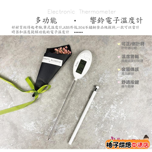 【柚子烘焙食品】Betty's焙蒂絲 食品警報溫度計 304不鏽鋼食品級探針 電子溫度計 煮糖專用 溫度計 能發出警報聲
