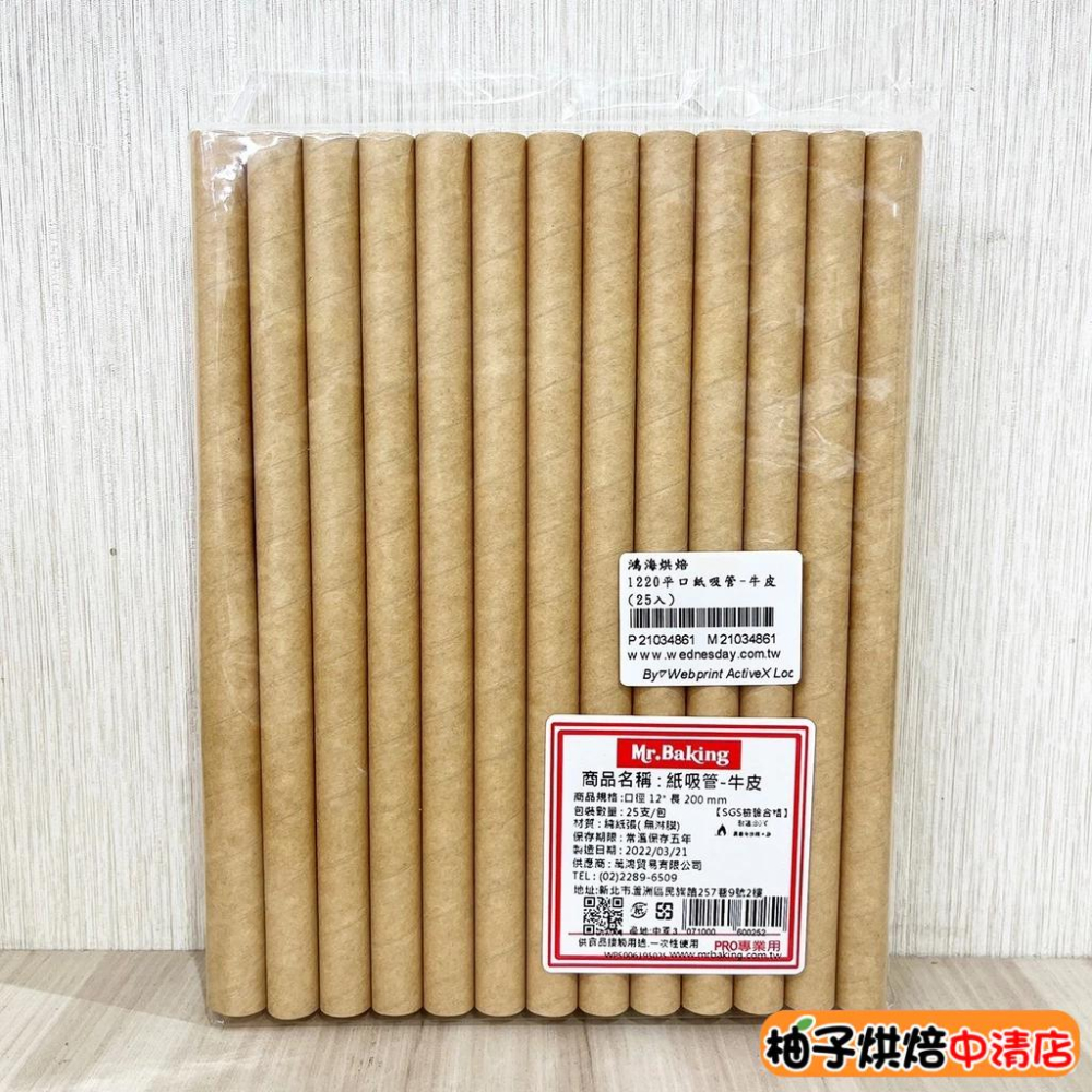 【柚子烘焙食品】平口紙吸管 牛皮紙吸管 口徑12mm (25入) 牛皮吸管 紙吸管 環保吸管 防水硬紙吸管 營業用 飲料