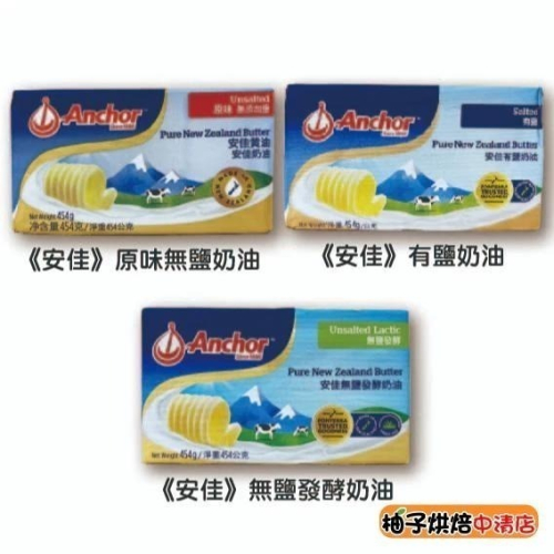 【柚子烘焙食品】紐西蘭 安佳 無鹽奶油 有鹽奶油 無鹽發酵奶油 454g 安佳奶油 紐西蘭 Anchor安佳 磅裝奶油