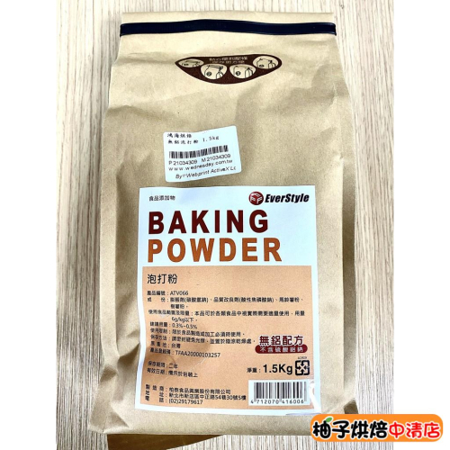 【柚子烘焙食品】柏泰 泡打粉 1.5kg原裝 無鋁配方 泡打粉 柏泰 Everstyle 速發粉 膨發效果佳 食品添加物