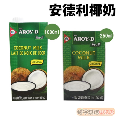【柚子烘焙食品】泰國 AROYD 椰奶 250ml/1000ml(純素)椰漿 安德利椰奶 南洋料理 咖喱 椰奶鋁箔裝