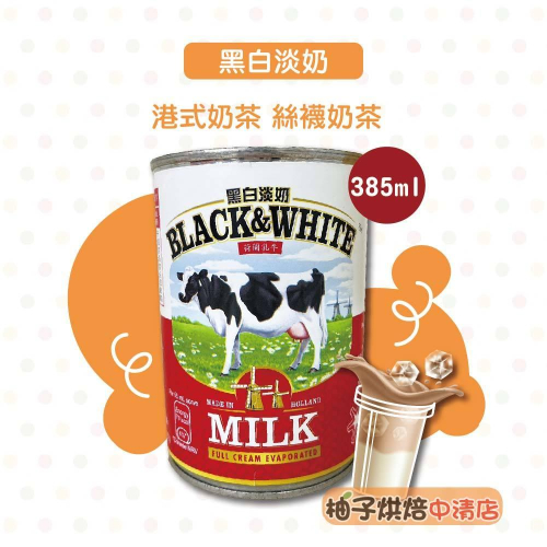 【柚子烘焙食品】BLACK&WHITE 黑白淡奶 385ml 港式奶茶 黑白奶水 絲襪奶茶 全脂淡奶 奶茶 淡煉乳 港飲